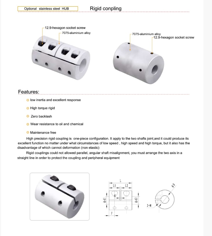 Rigid couplings could not allowed parallel , angular shaft misalignment , you must arrange the two axis in a straight line in order to protect the coupling and peripheral equipment.