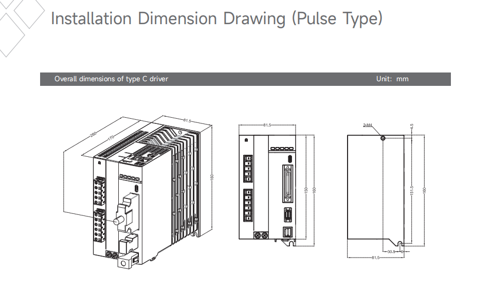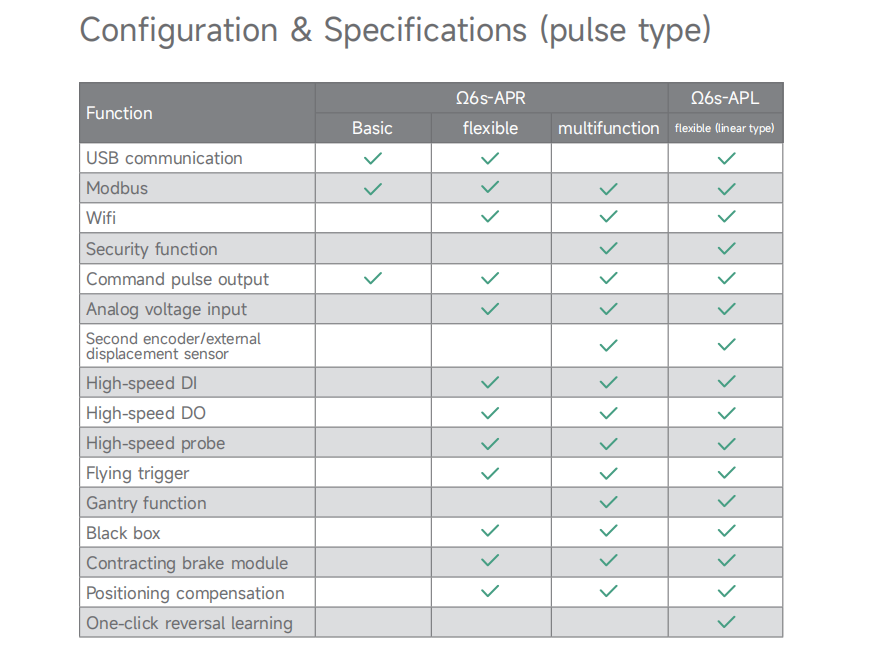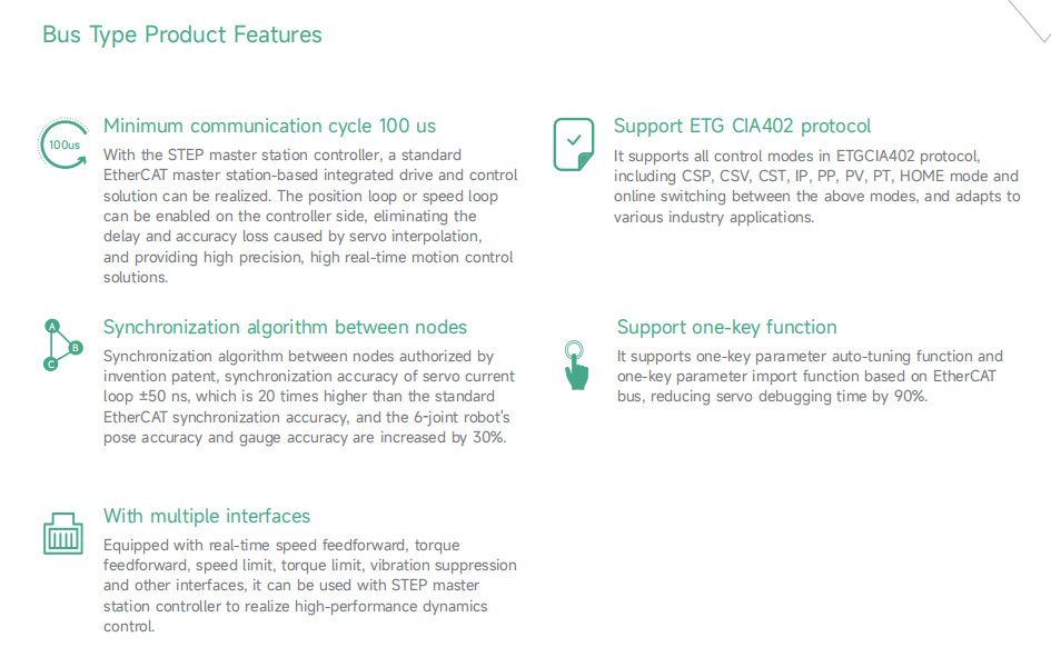 The product series is divided into A series (high-performance general-purpose) & C series (economic), the communication mode mainly has pulse type and ETHERCAT bus type: