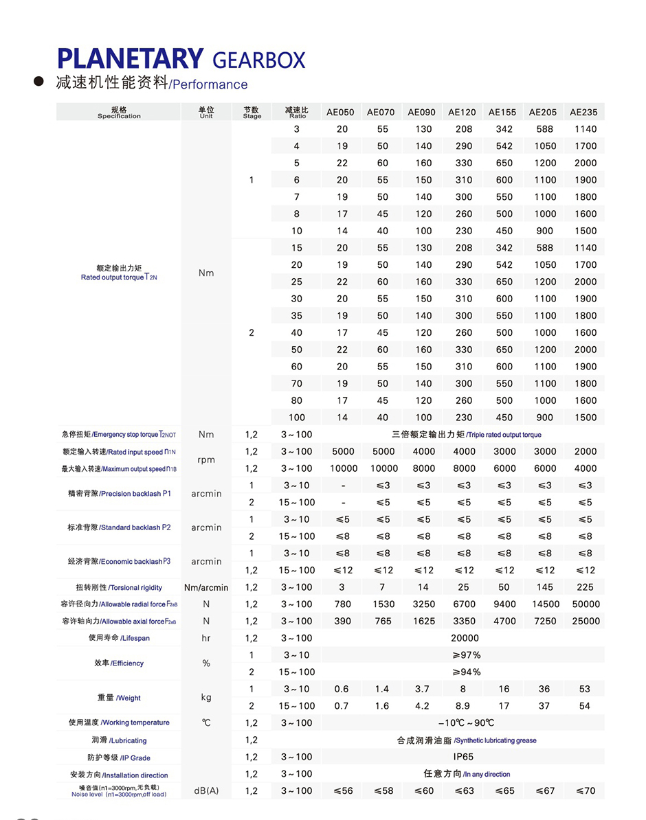 Precision Backlash: Single tage,P1≦3 ,Double stage,P1≦5