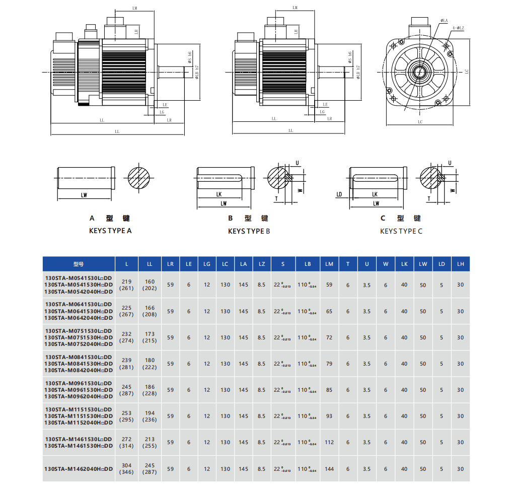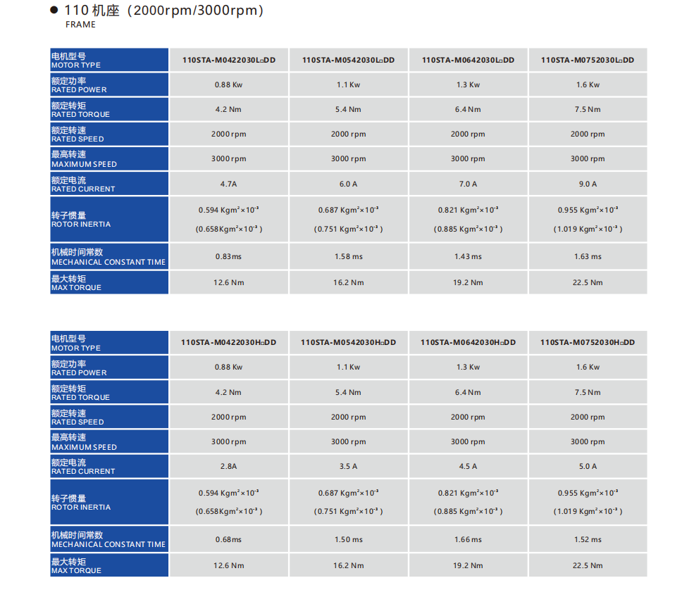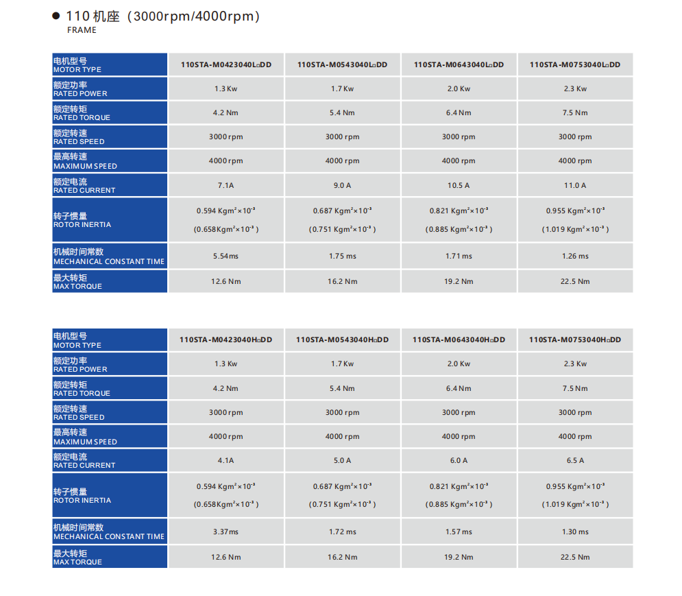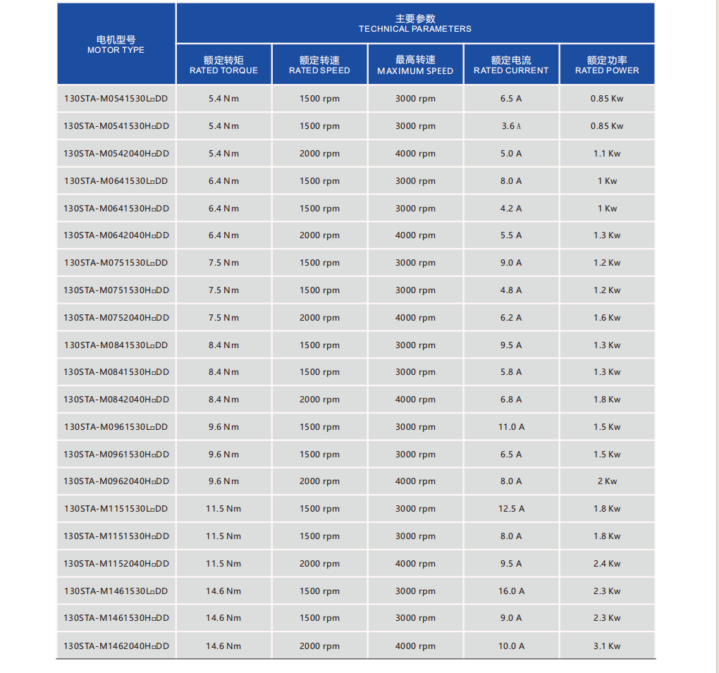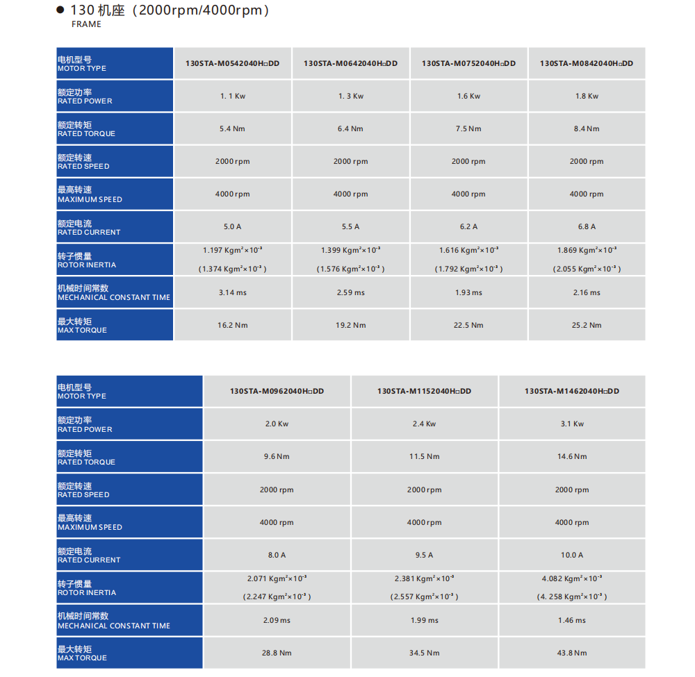 Frame Sizes: 110STA, 130STA, 180STA 4.2-55Nm 0.85-8.6kw Rated speed:1500/2000/3000rpm,Max speed:3000/4000rpm