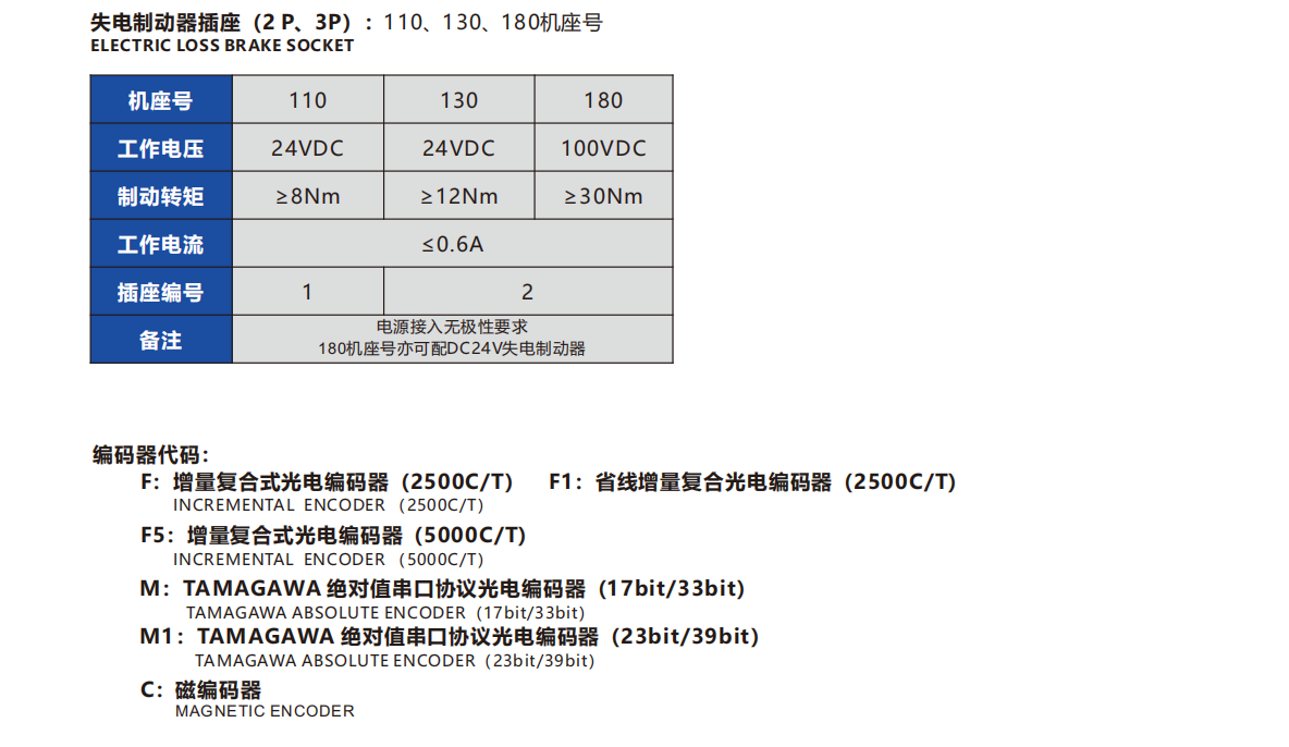 9.The full series motors can be configured with incremental/absolute encoders as required.