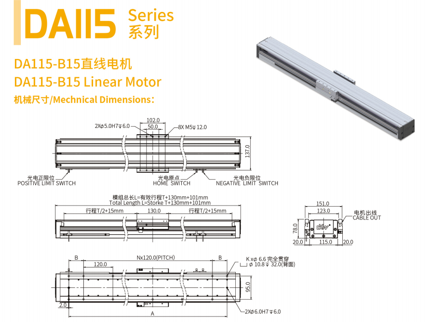 Product features: independent research and development design, lightweight and miniaturized linear motor standard products;