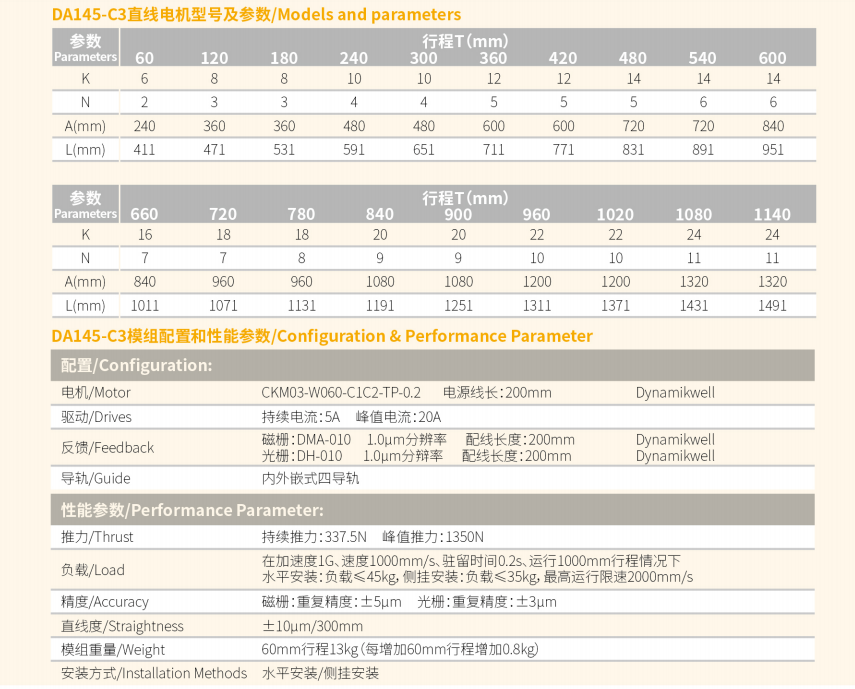 Product features: independent research and development design, lightweight and miniaturized linear motor standard products;