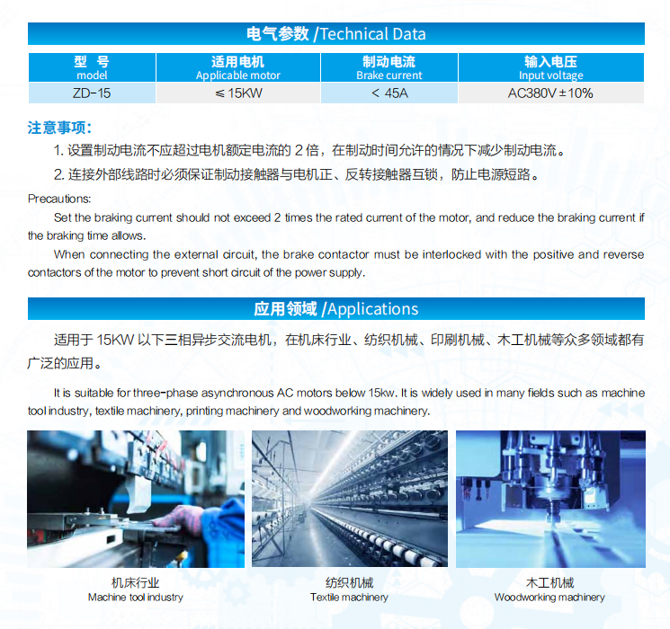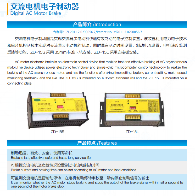 The device uses power electronics technology and single chip microcomputer control technology to brake AC asynchronous motor, and has the functions of setting braking time, setting braking current, monitoring and feedback of motor speed, etc.