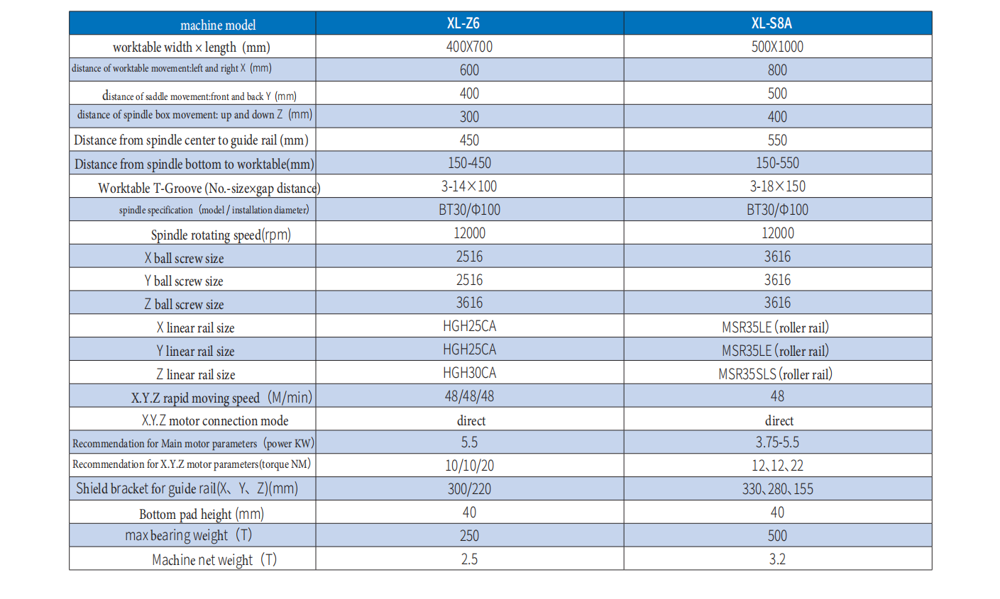 - ·Imported ball screw and precision lock nut (screw for Taiwan brand, Spanish brand, German brand, American brand, lock nut for Taiwan brand);