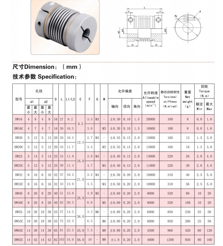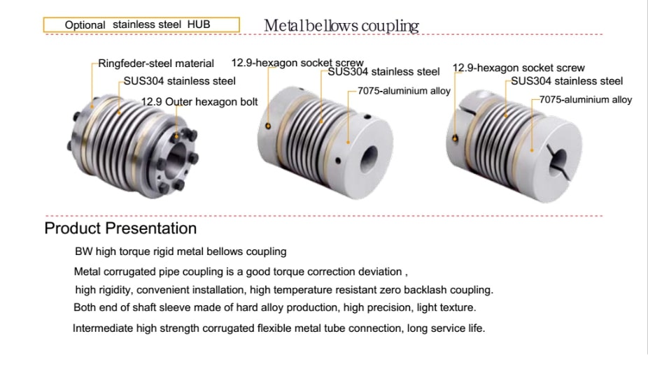 BW high torque rigid metal bellow coupling