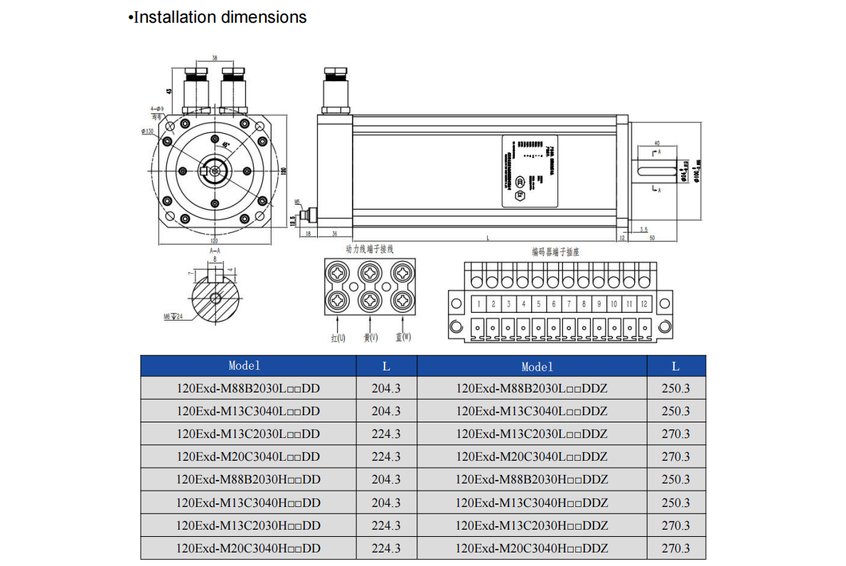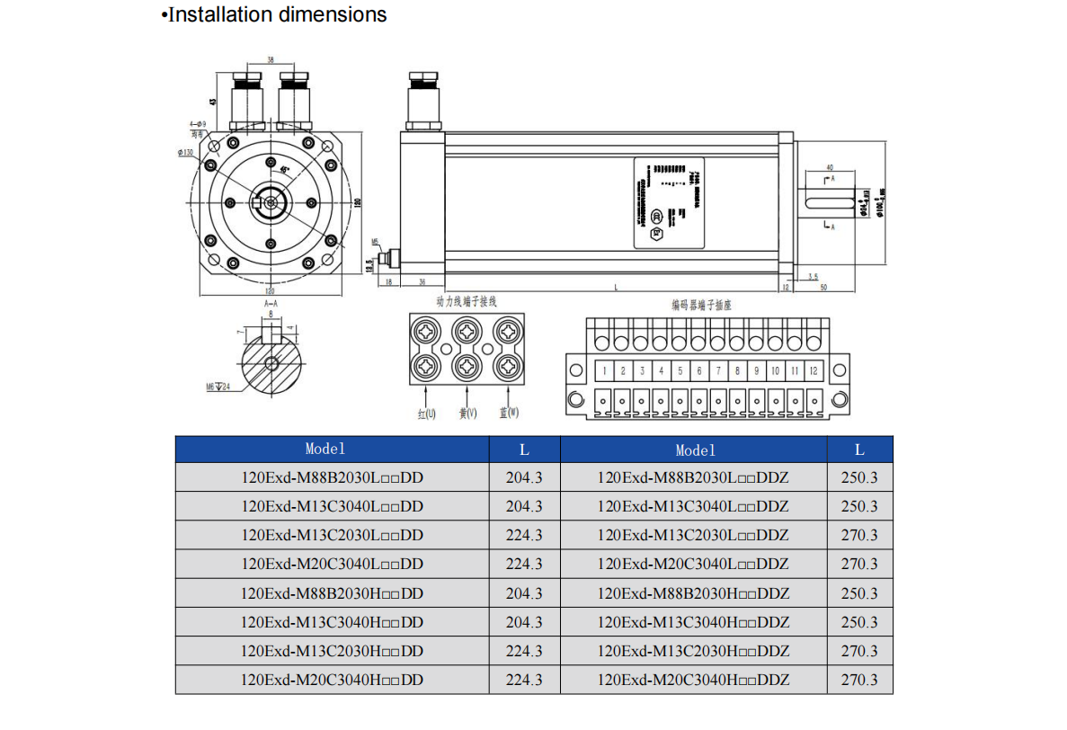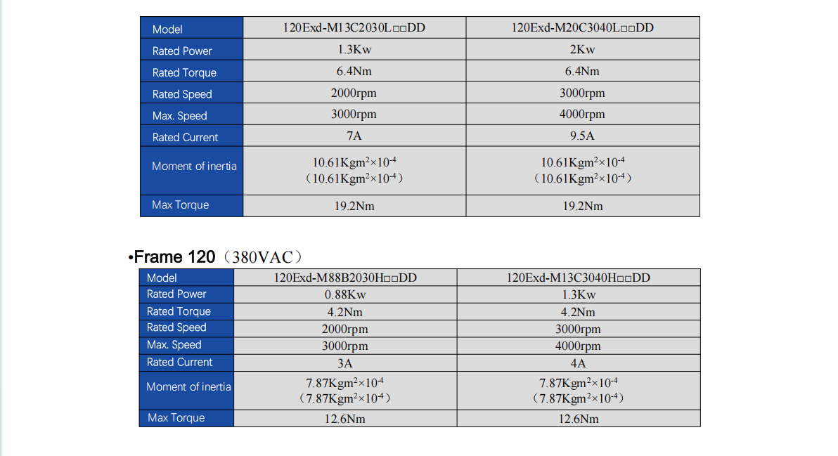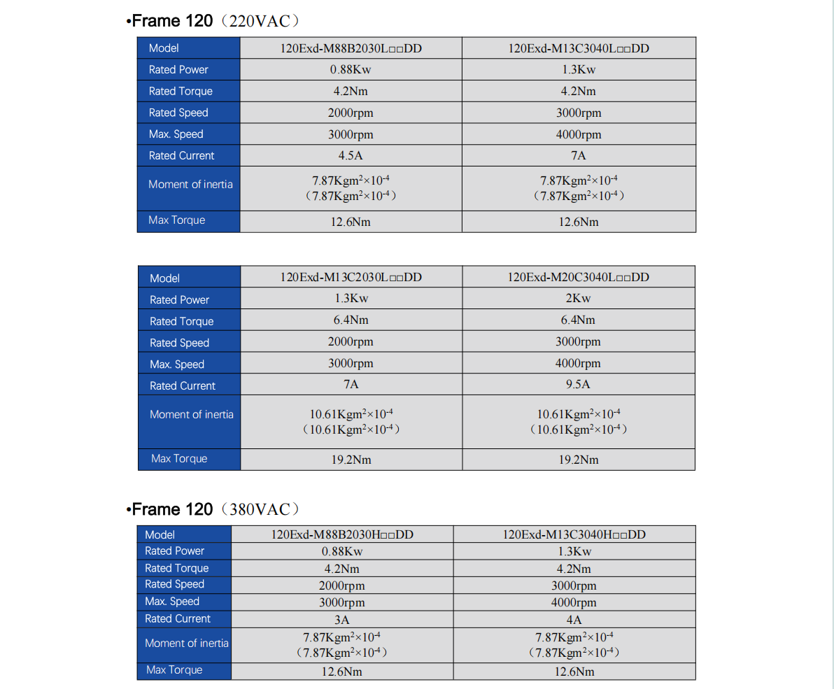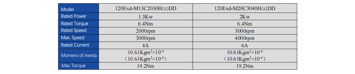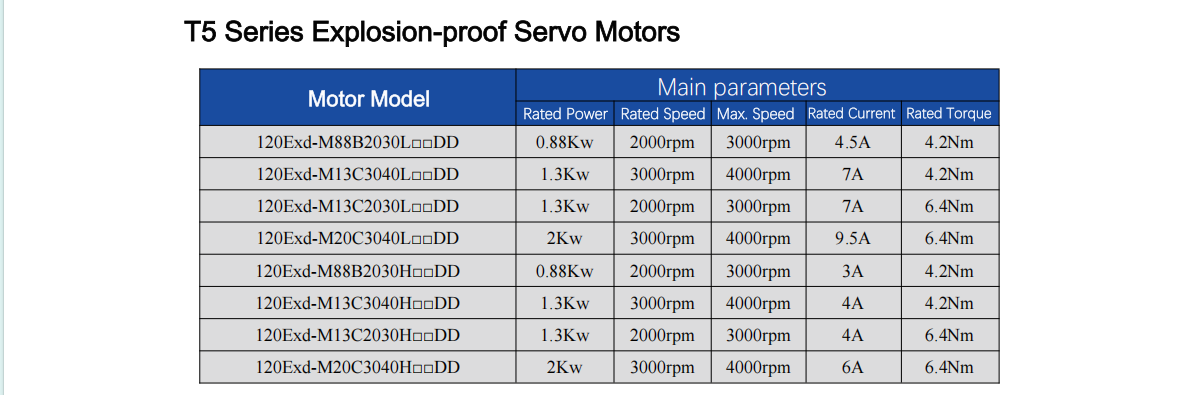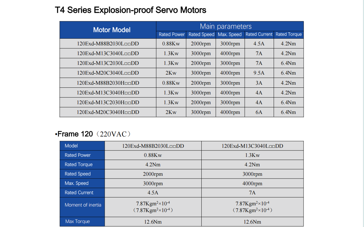 Explosion-proof Servo Motor, T4&T5 Rating, 220V&380V, 120 Flange, 0.88-2kw 4.2-6.4Nm 2000-4000rpm