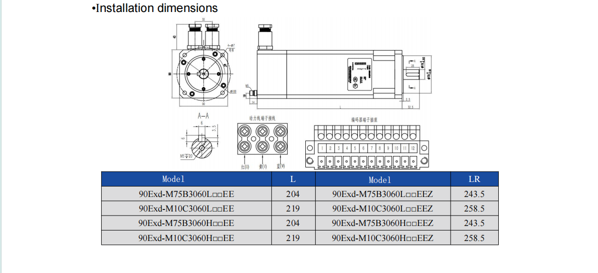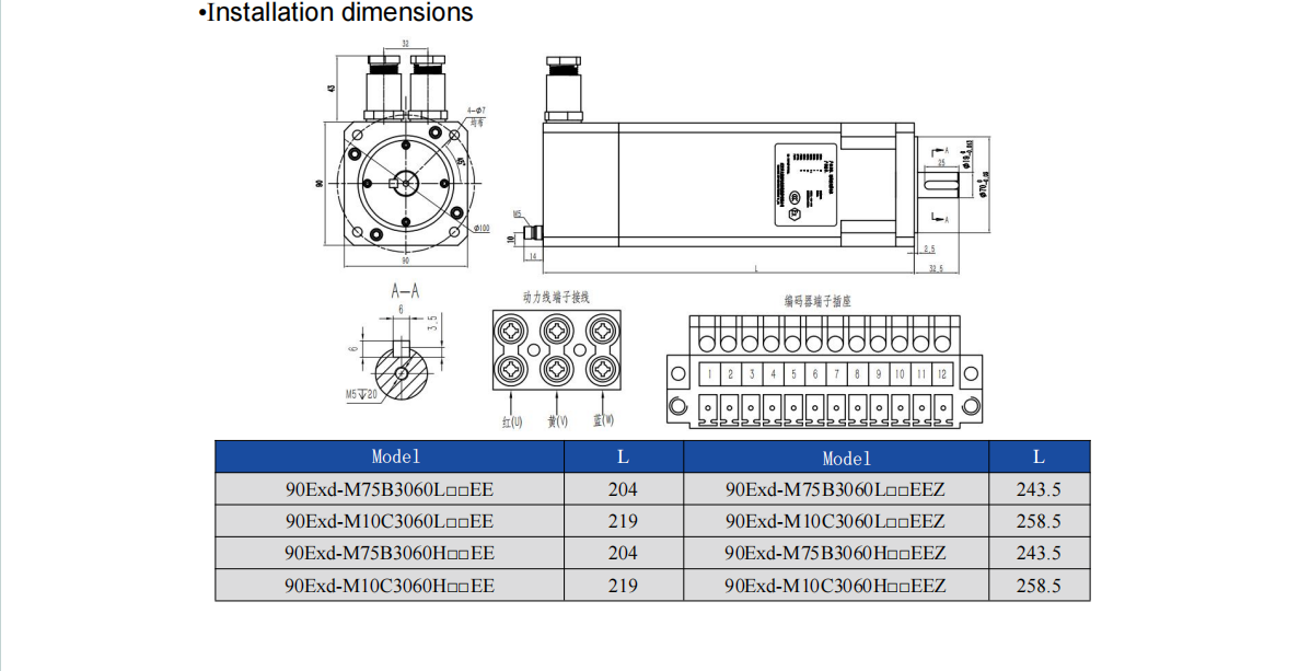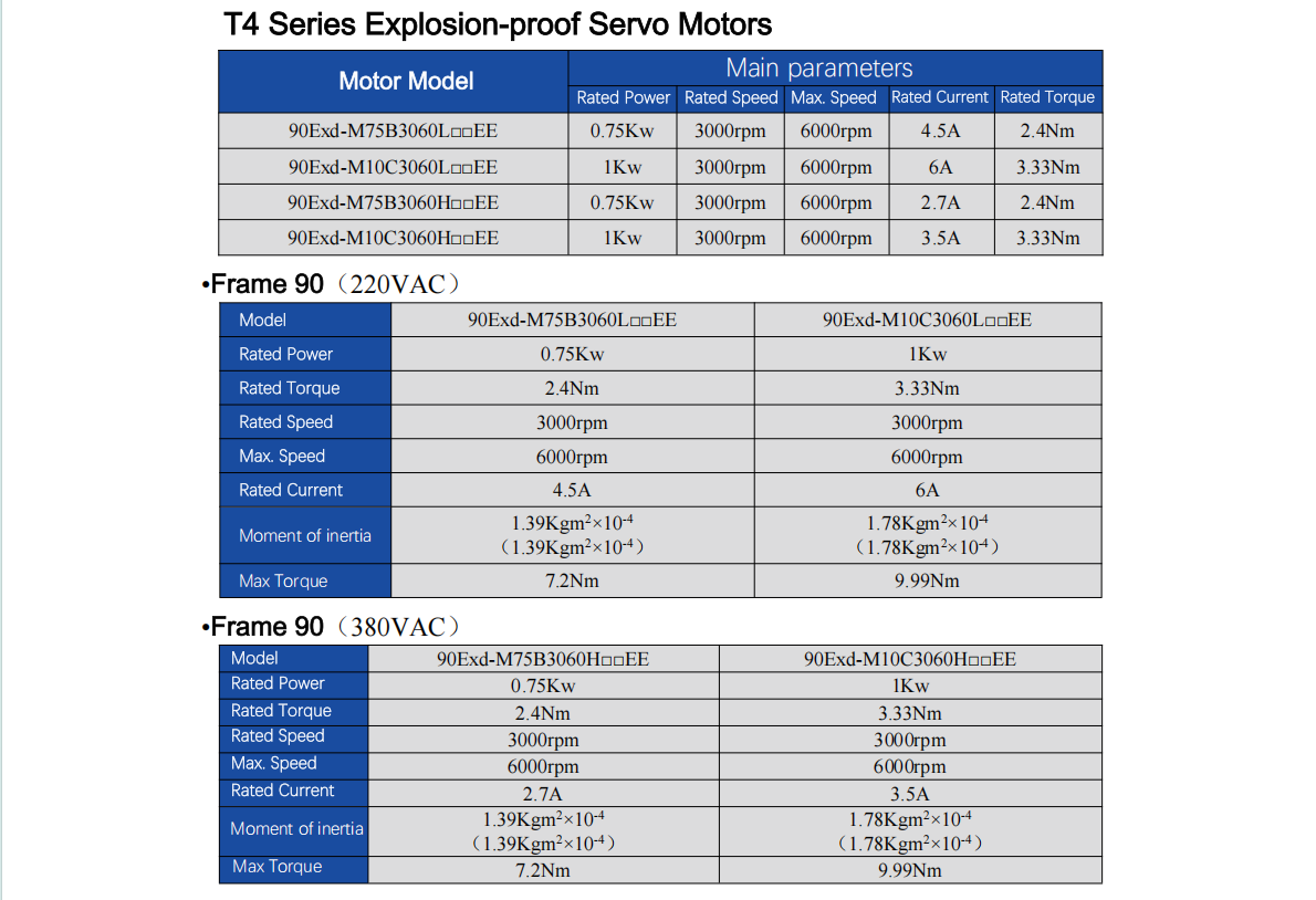 Explosion-proof Servo Motor, T4&T5 Rating, 220V&380V, 90 Flange, 0.75-1.0kw 1.27-1.91Nm 3000-6000rpm