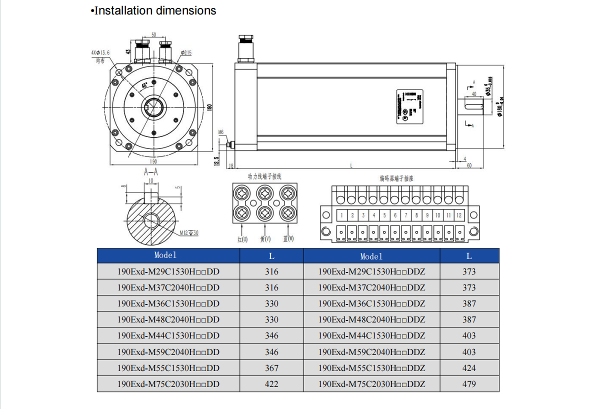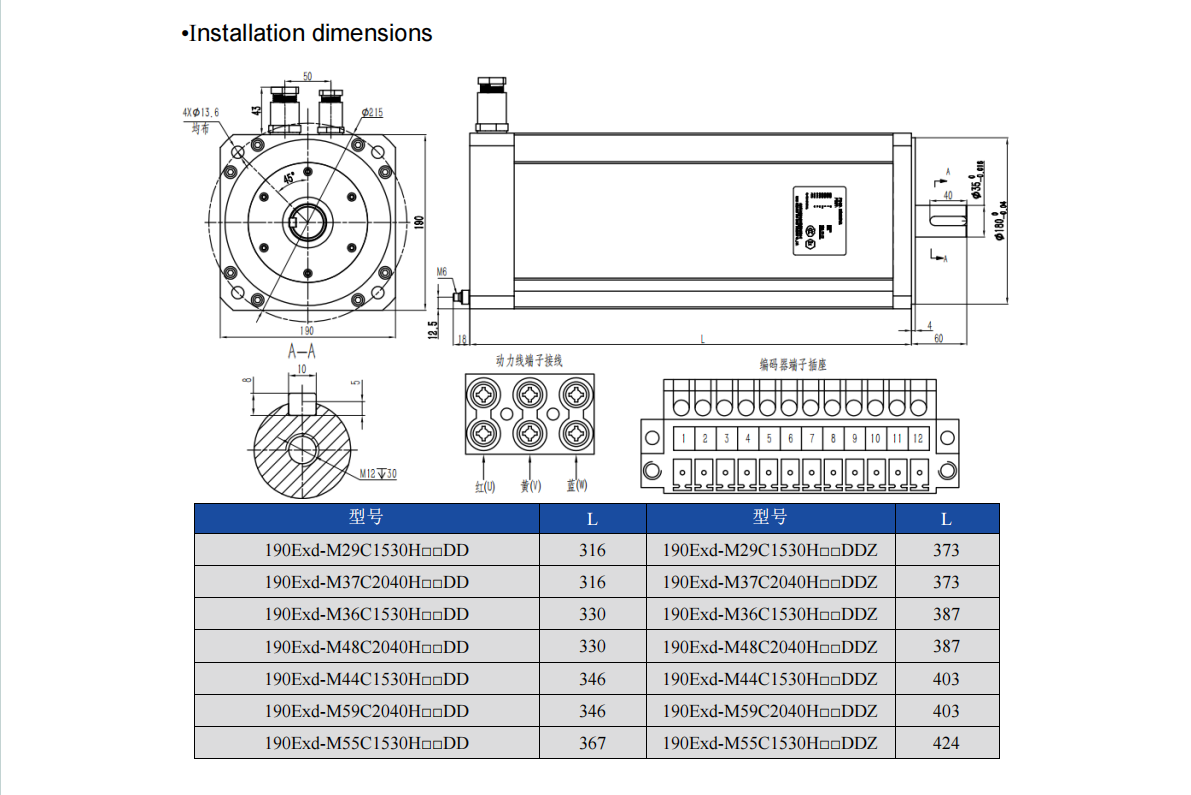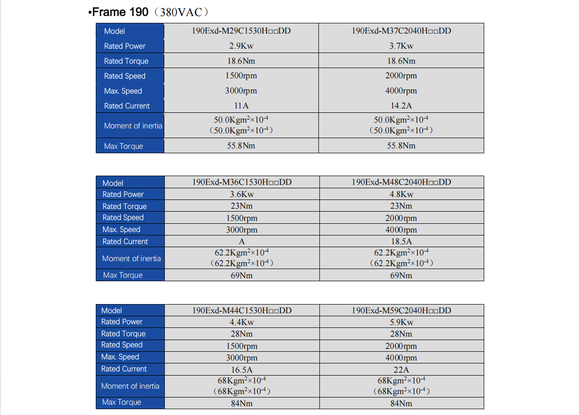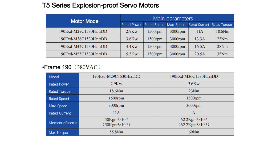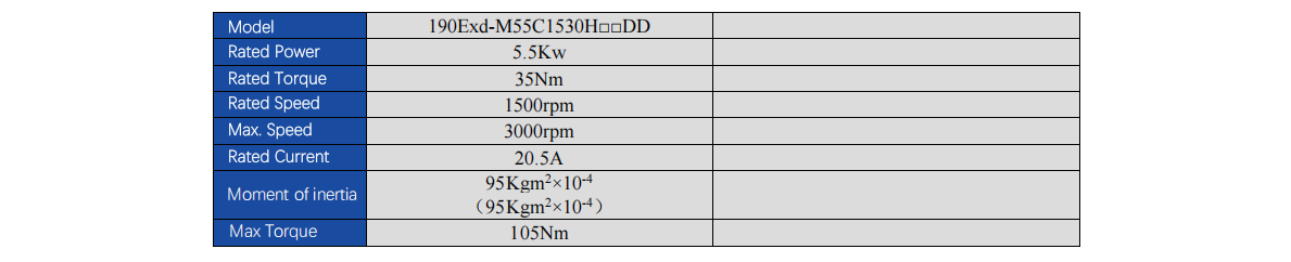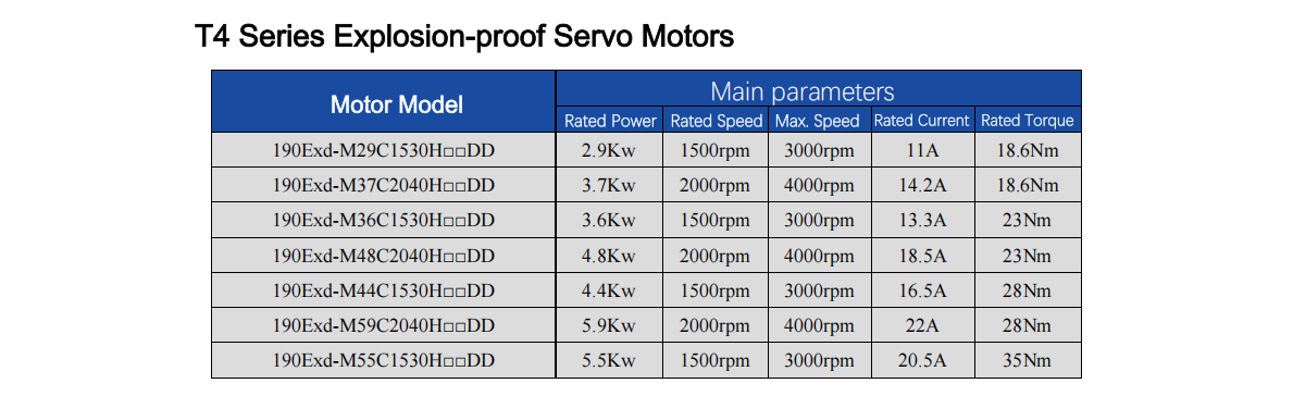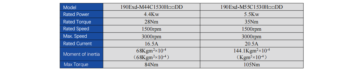 Explosion-proof Servo Motor, T4&T5 Rating,380V, 190 Flange, 2.9-5.5kw 18.6-35Nm 1500-4000rpm