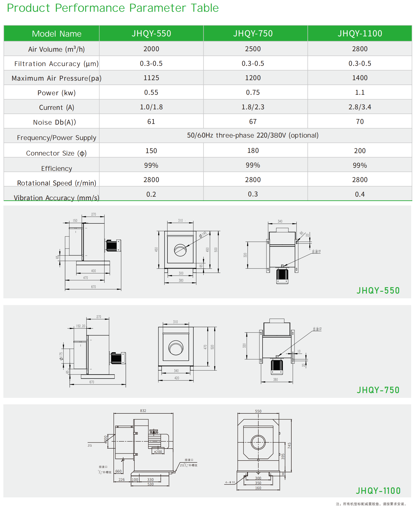 JHQY 550/750/1100 Small Oil Mist Collector