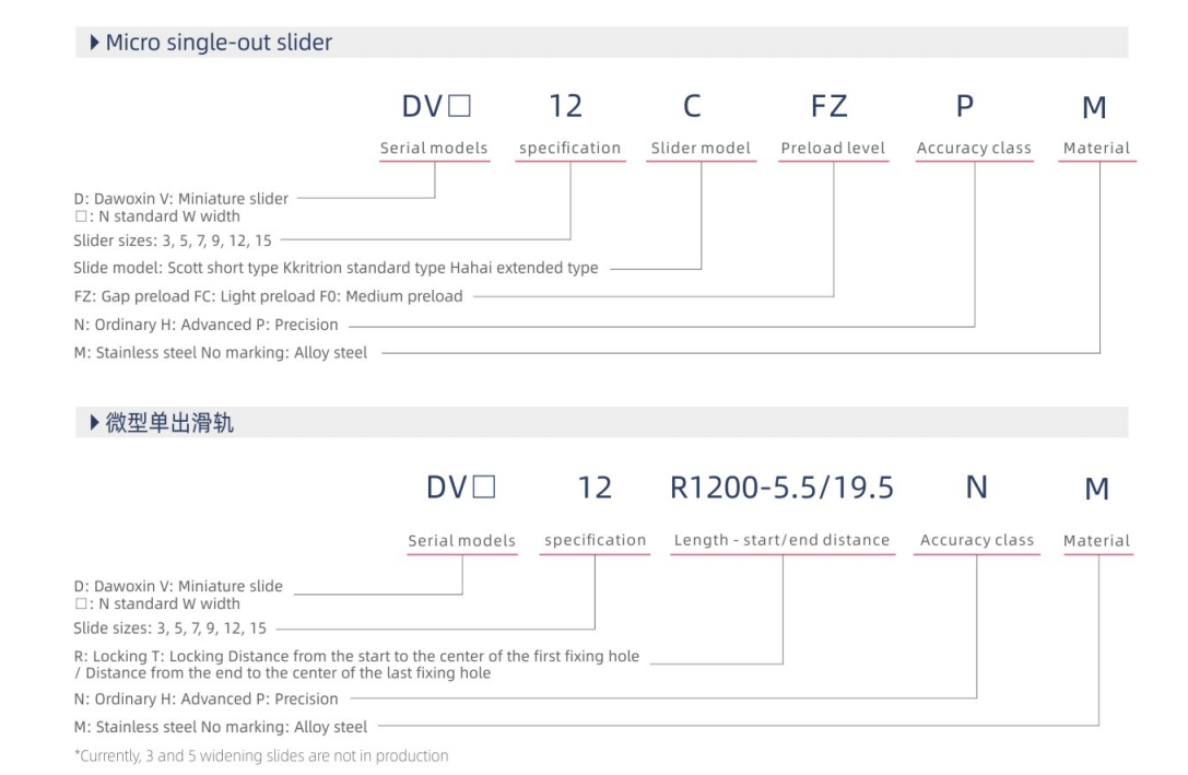 Micro Guide Rail DVW Series | All-steel Ball Micro Type | Micro Linear Guide Rail DVW2, DVW3, DVW5, DVW7, DVW9, DVW12, DVW15, with slide rail widths ranging from 4mm to 42mm