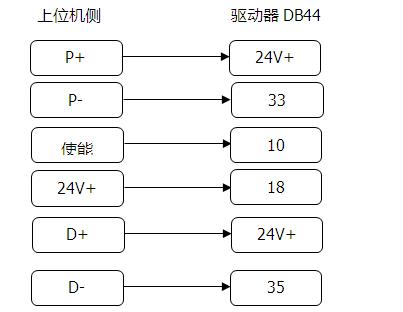 The host computer is connected with the control terminal of the servo driver. The control mode is pulse + direction in the position mode. The host computer sends the position command to the servo driver. The servo driver drives the motor to complete the stacking process according to the specified action. The control terminal wiring is defined as follows: