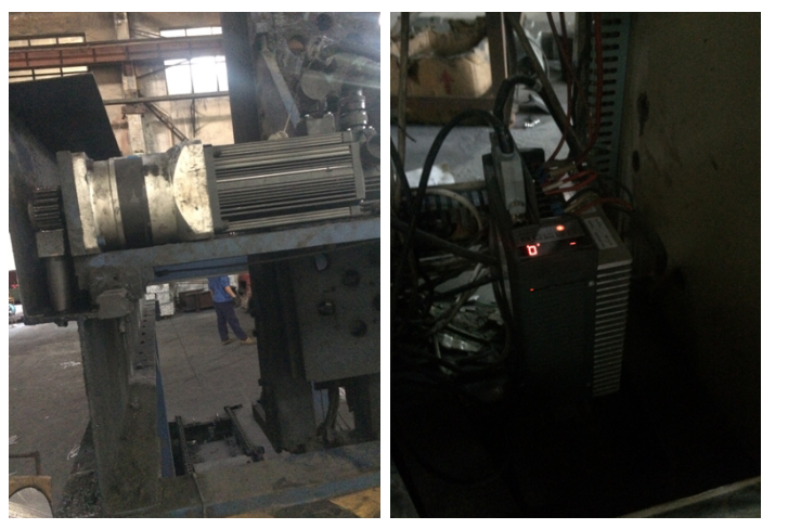 The servo system of the aluminum ingot stacker is mainly composed of two sets of servo drivers and motors. The horizontal shaft is mainly composed of ZSD-GA3215 and 110ST-M10020 motors. The vertical shaft is composed of ZSD-GA3230B and 110ST-M10010 motor. The positioning is carried out by the combination of these two motor, in which the front of the horizontal shaft is equipped with a reducer to increase the output torque. The site drawing is shown below: