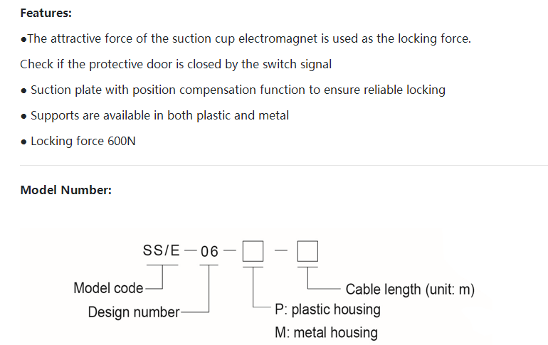 It is a safety door switch withelectromagnetic locking.It detects the guard status with switch signals to decide whether to start the machine or not.