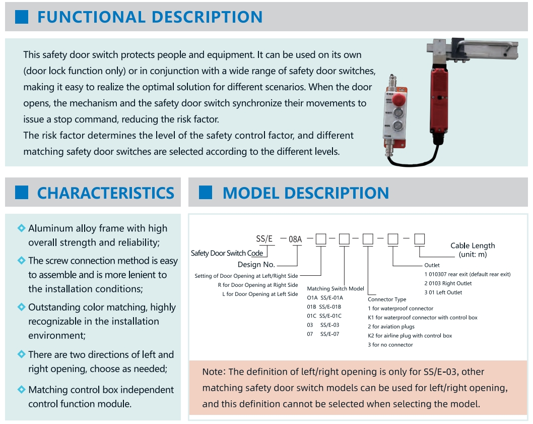CNC machine tool safety door switch plays a vital role in safeguarding the safety of operators and equipment. It can effectively avoid the occurrence of accidental collision, entrapment and other safety accidents, reduce the safety risk of the operator, and also protect the normal operation of the machine tool equipment. Therefore, the correct selection, installation and use of safety door switches is essential to ensure the safety of the working environment of CNC machine tools.