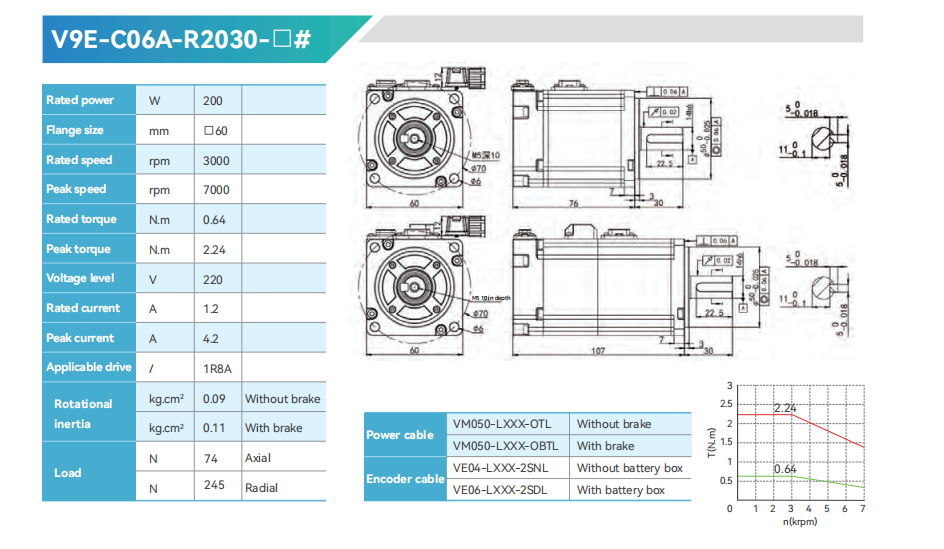 High-speed and ultra-low inertia :60-80Flange 0.2-1.0kw 0.64~3.2N.m 3000~7000rpm
