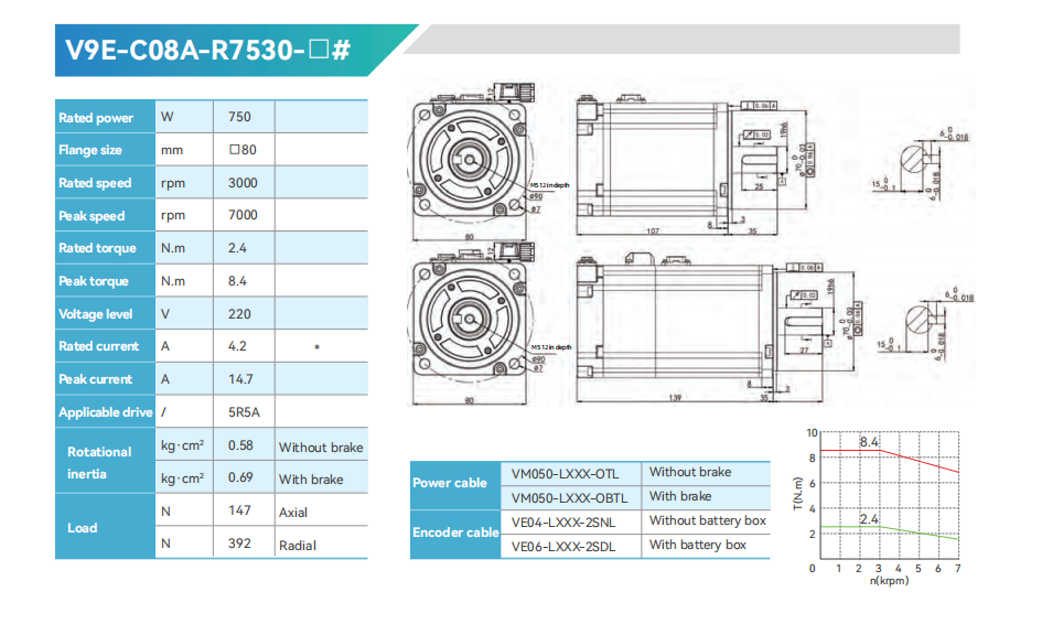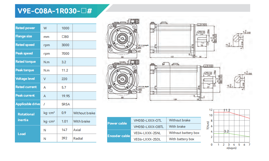 V9E SERVO MOTOR High-speed ultra-low inertia 0.64-3.2Nm 3000-7000rpm