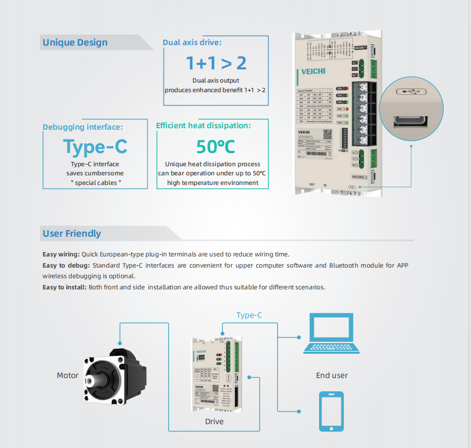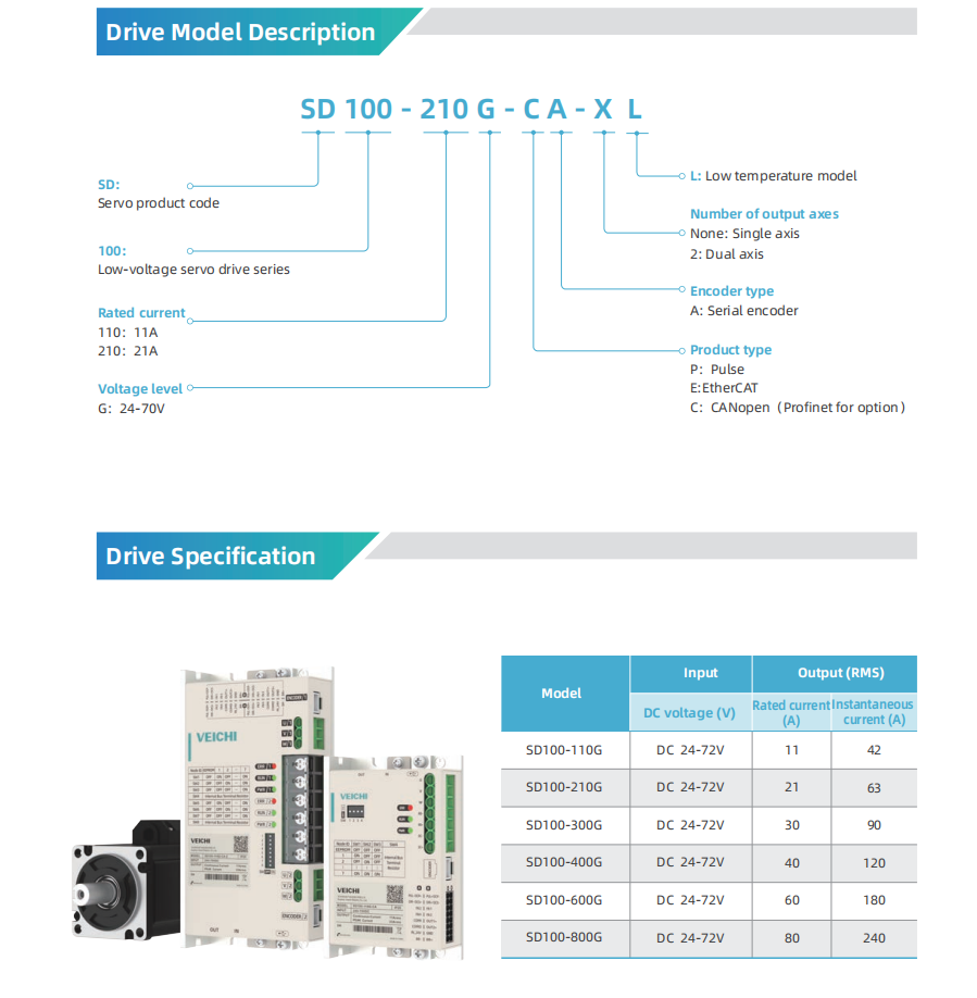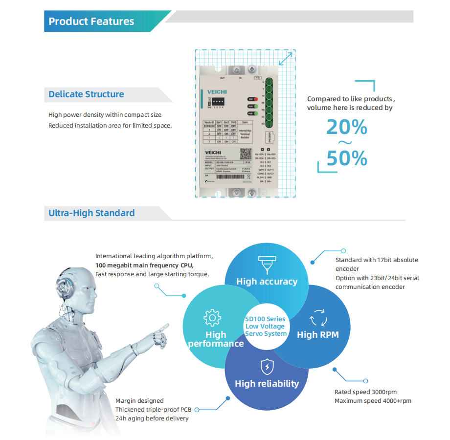 SD100 series low-voltage servo drive Features