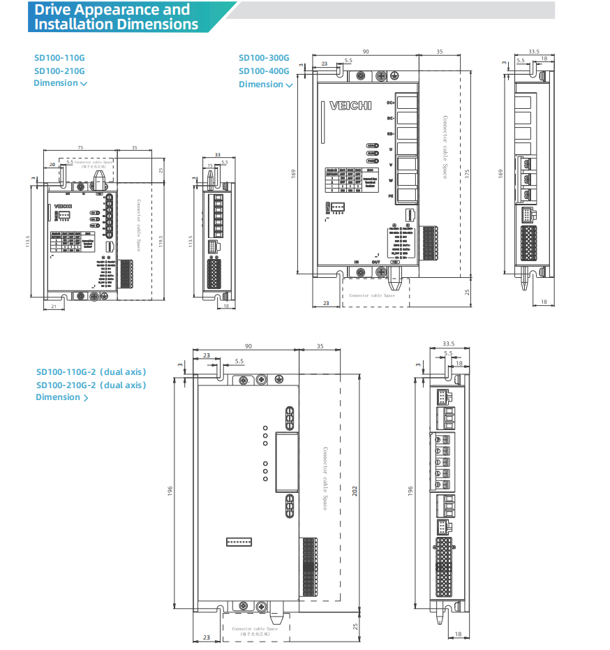 SD100 series low-voltage servo drive adopts international leading algorithm platform, which can support single-axis/dual- axis/multi-axis motor algorithm control, its compact size, rich function, flexible and easy to use, stable and reliable, widely used, with high performance, high precision, high