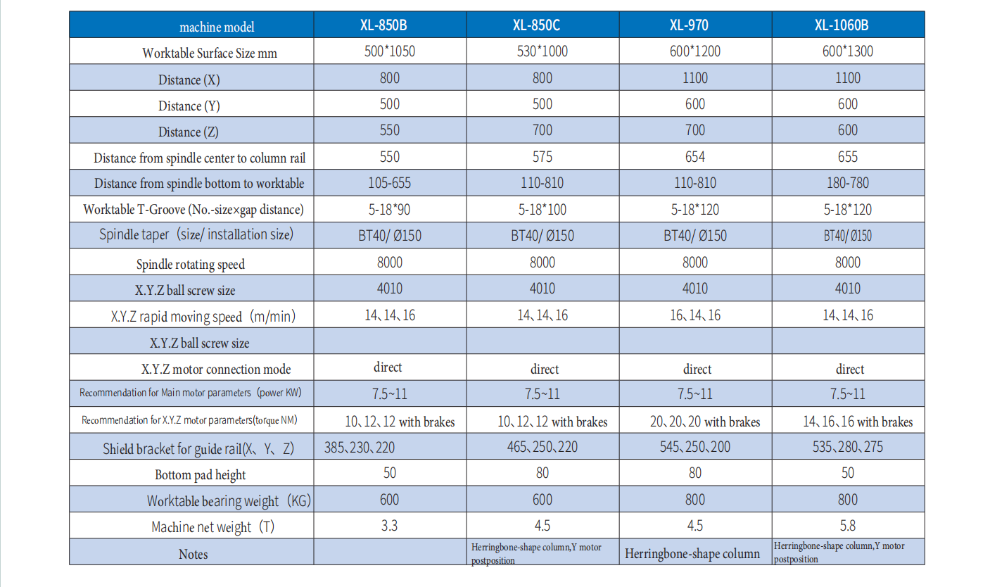 - Taiwan-made spindle, some optical machine can choose direct connection, BT40, BT50, gear head, short nose and other special types of spindle, further inquiry needed;