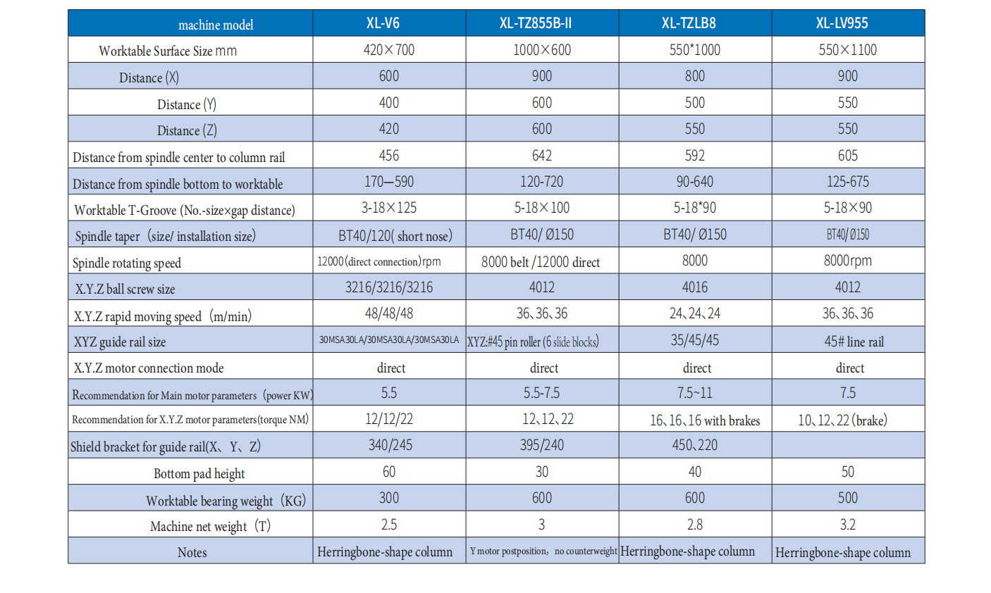 - Taiwan-made spindle, some optical machine can choose direct connection, BT40, BT50, gear head, short nose and other special types of spindle, further inquiry needed;