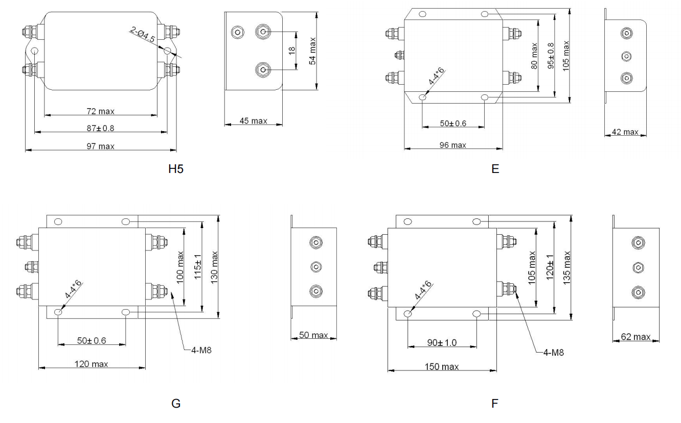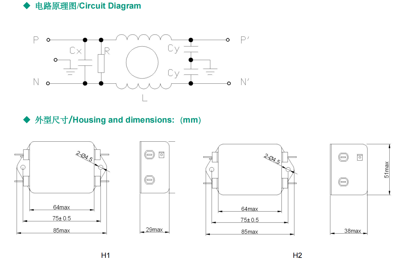 YB220 series single-phase universal filter (This series of products can provide terminal station wiring) Rated voltage: 250VAC Rated current: 6 ~ 100A Optional Lead, solder, bolt, terminal station and other connection methods are available Customized products are available